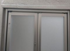 古いアルミの開き戸から、新しく樹脂製の折れ戸に交換しました。